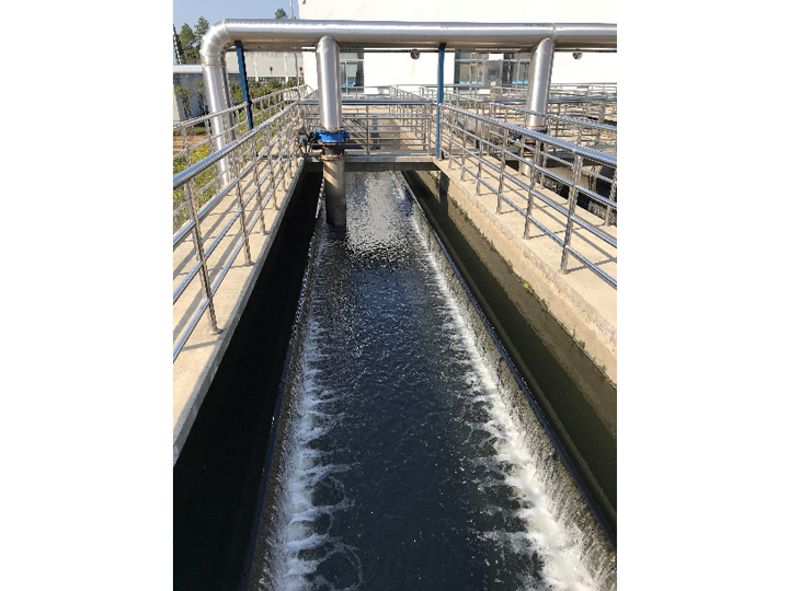 反硝化深床濾池池體,采用狹長廊道使進(jìn)水均勻;濾磚結(jié)構(gòu)使濾池反沖洗效果良好;反硝化過程中產(chǎn)生的氮氣會使過濾產(chǎn)生氣阻,通過驅(qū)逐氮氣,確保濾池運行效果。